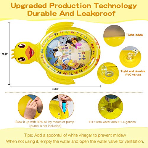 Upgraded Leak-proof Technology: Each baby tummy time water mat has been strictly tested for no leak and durability. BROADREAM also improved the production technology and the structure of the air nozzle and water valve to make baby water mat has better leak proof performance.