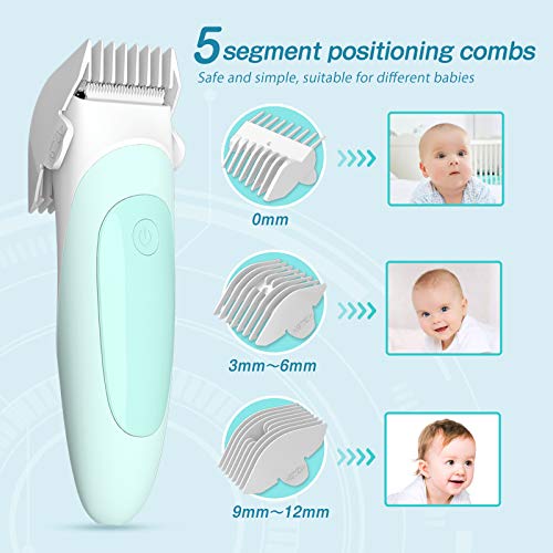 [Hair Clipper Kit] – It includes 3 guide combs from 0 mm – 2 mm, to 3 mm – 6 mm, to 9 mm – 12 mm, 6 hairstyle attachments and 1 Detail Trimmer Head. You can easily cut your baby’s hair at home according to your needs.