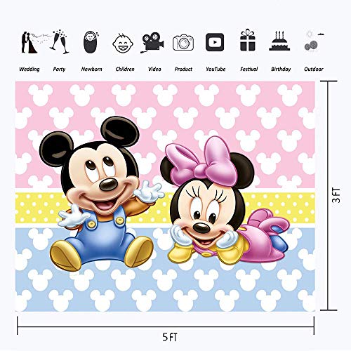 Specification: Mickey and Minnie Mouse Gender Reveal Backdrops 5×3 Pink and Blue Backdrop Baby Shower for Boy or Girl Vinyl Happy 1st…