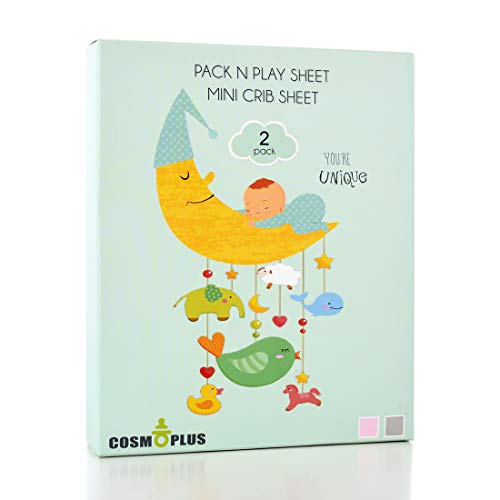 Specification: Fitted Playard Sheets 2 Pack Mini Crib Sheet Set,Pack n Play Mattress Cover, Stretchy Ultra Soft,Pink/Grey