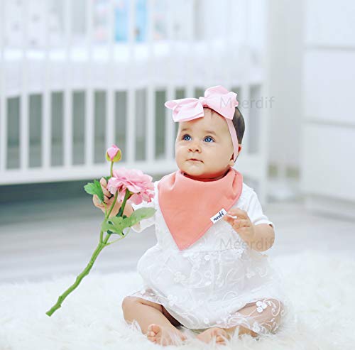 SUPER SOFT ORGANIC ABSORBENT COTTON DROOL BIB – These stylish drool bibs are made of 100% soft organic cotton and 100% super absorbent polyester fleece on the back that keeps your baby completely dry even with the drooliest of babies. great for teething babies! (Intelligent moisture management). Meerdif bandana bibs come in a set of 8 pieces & keeps your baby stylish with the trending solid colors and relief to changing outfits many times a day.
