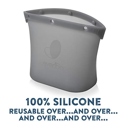 The Evenflo Silicone Steam Sanitizing Bag is designed to help eliminate harmful germs and bacteria from most pump parts, bottles, pacifiers, and more. Made from 100% food-grade silicone, this this patent pending, eco-friendly bag is more durable than plastic alternatives and can be used over and over again, creating less waste for the environment. To sanitize, simply add 2 oz. of water, your microwave-safe items, and place in the microwave for the instructed amount of time. The self-standing bag will maintain a stable upright position while in use, and the Safe-Grip corners provide a place for safer, cooler handling. This durable silicone bag is not only great for sanitizing, but can also be used for snacks, storage, and more.