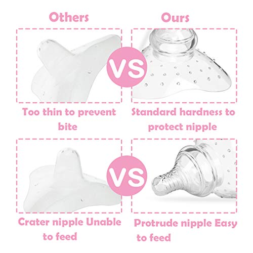 【Made of Food Grade Soft Silicone】The Nipple Shield is made of 100% clear view food grade soft silicone which is super soft, lightweight and full of toughness. The material is BPA-Free, non-toxic and harmless to humans.