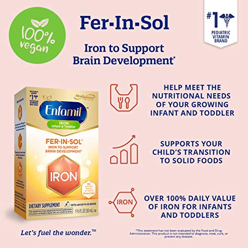 Specification: Enfamil Fer-In-Sol Iron Supplement Drops for Infants & Toddlers, Supports Brain Development, 50 mL Dropper Bottle