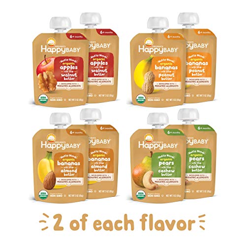 Specification: Happy Baby Organics Nutty Blends Organic Variety Pack (Pack of 8) Apples/Walnut Butter, Bananas/Almond Butter, Bananas…