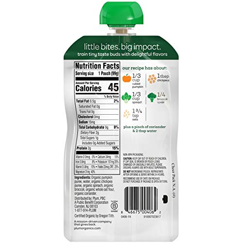 Specification: Plum Organics Baby Food Pouch Stage 2, Pumpkin, Spinach, Chickpea & Broccoli, Organic Food Squeeze for Babies, Kids…