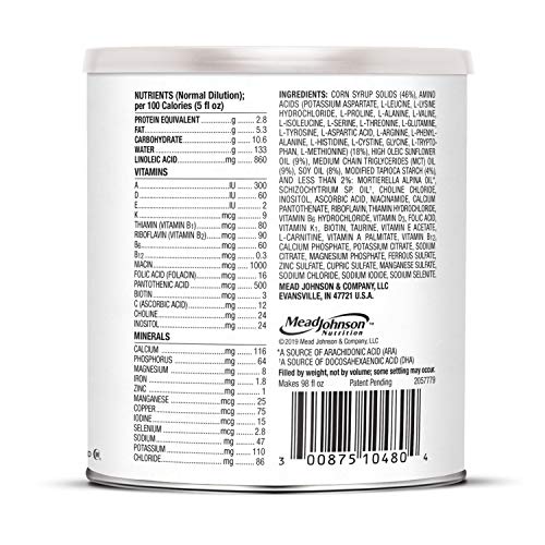 PurAmino is a hypoallergenic, iron fortified, amino acid based baby and toddler formula used for infants and toddlers with severe cow’s milk protein allergies, and other food allergies. It also is suitable for conditions such as protein maldigestion, malabsorption/chronic diarrhea, short bowel syndrome and eosinophilic esophagitis. It contains omega 3 DHA and ARA, important fatty acid nutrients that provide brain support and eye development for your baby. PurAmino can provide a sole source of nutrition for infants up to age 6 months and provide a major source of nutrition for toddlers through 24 months of age, when indicated. Normally, in feeding infants, gradual introduction of solid foods after 4–6 months of age is an important developmental as well as nutritional step. In cases of severe and multiple food allergies or intolerances, PurAmino is sometimes continued as a milk substitute in the diet of children. This and similar supplemental use of PurAmino in the diet beyond 24 months of age may make a significant contribution to maintenance of good nutrition. PurAmino is created by the maker of Nutramigen—the #1 recommended brand* for managing infants who are allergic to cow’s milk protein‡. ‡By pediatricians who recommend a specific formula. *Enfamil is the #1 pediatrician recommended brand of Infant Formula QuintilesIMS, using the ProVoice Survey fielded from October 1, 2016 to September 30, 2017. PurAmino is also suitable for other conditions that may require an elemental diet