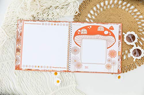 Flower Child baby memory book is the perfect keepsake to cherish every moment with your adorable baby; includes 2 pre-baby pages for photos, ultrasound and note to baby 3 pages for when baby arrives including a spot for footprints, a page to place birth announcement and hospital bracelet 2 your world pages for a photo of home and how much things cost when baby was born 12 pages of month documenting 10 pages that include family tree, favorite things, many firsts including holidays