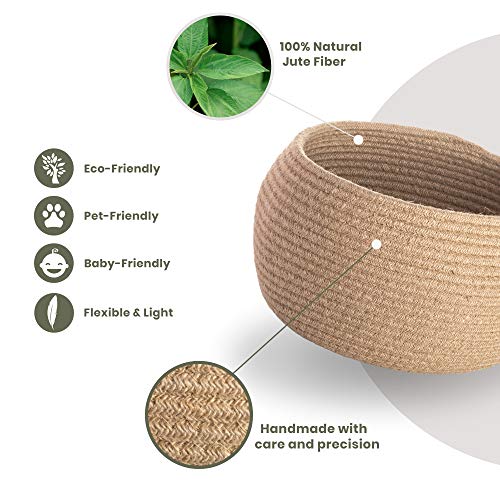 Small Jute Basket for Storage & Organizing – 10″W x 6.5″H Small Dog Toy Basket & Pet Storage Bin, Unique Boho Plant & Empty Gift Basket, Lost Socks Basket & Hand Towel Basket for Bathroom
