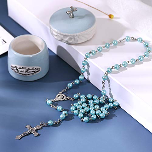 Blue my first rosary box made of high-quality porcelain material and metal materials