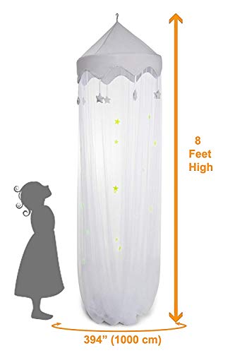 EASY TO INSTALL HANGING CANOPY THAT FITS MOST CRIBS AND BEDS- A simple hanging kit makes installing this kids bed canopy quick and hassle-free! Extra-long at 8 feet high and with a 394- inch base, it’s a perfect fit for a toddler’s crib or your teen’s king-size bed.
