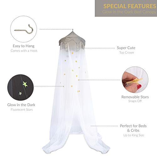MADE OF SOFT, COMFORTABLE, AND DURABLE MATERIALS- Enjoy this premium quality, crown-topped canopy for years. Made of cotton and soft polyester, the material is gentle on skin and non-irritating. Lightweight, transparent, and durable, this bed decor will be appreciated by the whole family.