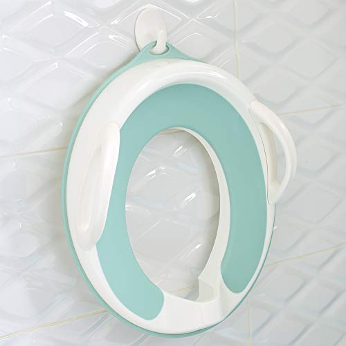 Our Toilet Training Seat with handles fits most standard toilets securely. The stylish aqua color can be used both for boys and girls.
