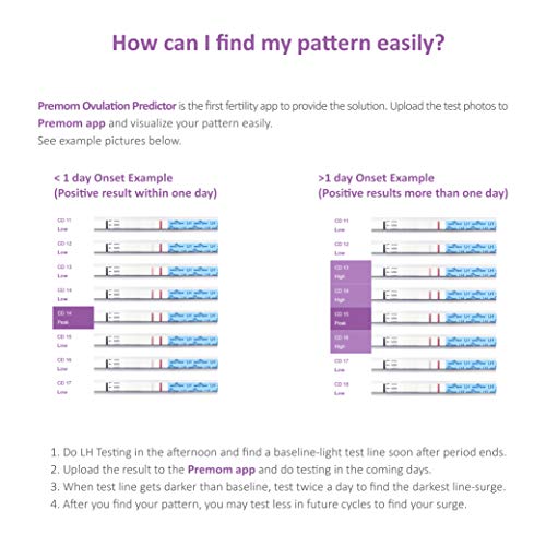 ✔ Easy to Use: Dip the test, check the result, and snap a picture. The Premom APP will automatically align your valid test results for visible progression tracking. You can track and view your cycle, fertility window, and predictions at any time. No need to keep the old urine test results anymore!