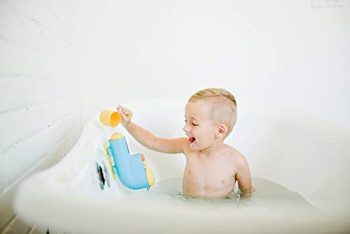 Fill submarine full of water with the yellow cup, add some floating balls, and then push the orange button to flush it down into the tub. ++Note: Button only releases when submarine is at least 1/2 filled with water. Please fill with water before pushing. Fill N’ Splash Submarine is utility and design patent-pending.