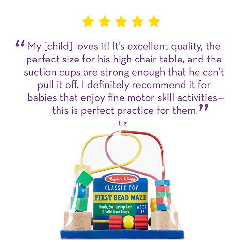 CLASSIC DEVELOPMENTAL TOY – WITH A TWIST: The Melissa & Doug First Bead Maze is an exceptional developmental toy for kids. It features 18 multiple-shaped wooden beads and three plastic rings that spin and slide.