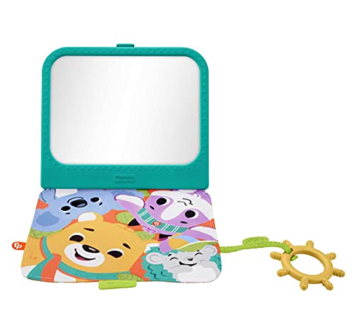 Fisher-Price Crinkle Crew Activity Mirror, take-Along Baby Toy with Large Mirror for Tummy time Play