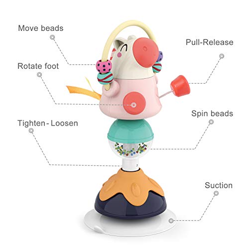 ♪Suction Design♪ Strong suction base easily attaches to the high chair, table, tray, floor or any smooth surfaces for frustration-free play. Wetting the suction cup will help this toy stick much better.