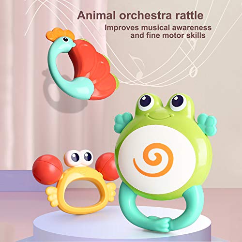 ❤【 ENTERTAIN INFANT TOYS】Good for teething. The newborn rattle teether toys with bright color, design with cute animal and the rattle sound can help develop baby’s colors, shapes and animals recognition. The infant toys designed with a hanging ring for easily hanging in the stroller and bed, that would be best gift for your baby Birthday gift and Christmas gift.