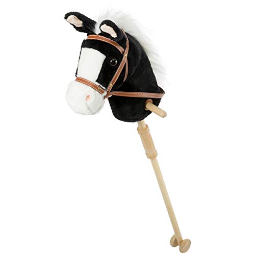 HollyHOME Outdoor Stick Horse with Wood Wheels Real Pony Neighing and Galloping Sounds Plush Toy Black 36 Inches(AA…